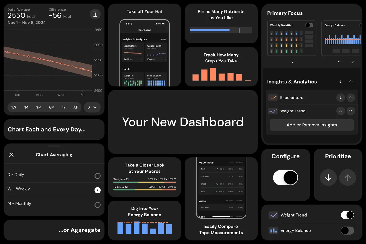 Basic apps show daily totals vs targets. More capable tools surface which days you miss protein, where calorie spikes cluster, which micronutrients show consistent weekly deficits.