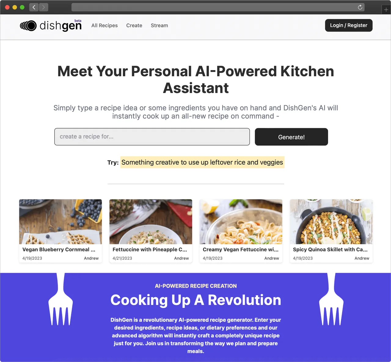 Weeknight variety. If you cook regularly and keep making the same five dishes, AI is genuinely useful for breaking out of that rotation — you describe what you're in the mood for and it finds a direction you wouldn't have Googled. For anyone generating recipes at higher volume, tools like DishGen handle that too, but that's a secondary use case.