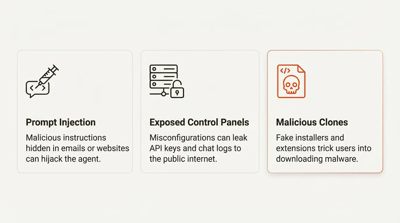The OpenClaw security documentation is explicit about this: "There is no 'perfectly secure' setup." You're trading convenience for control.