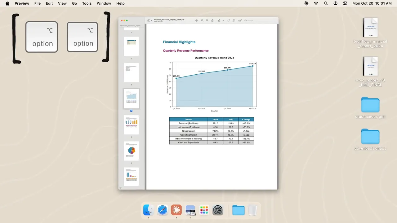 Setup: 150 files (PDFs, images, text docs) scattered across one folder. Mix of work docs, personal receipts, random downloads.