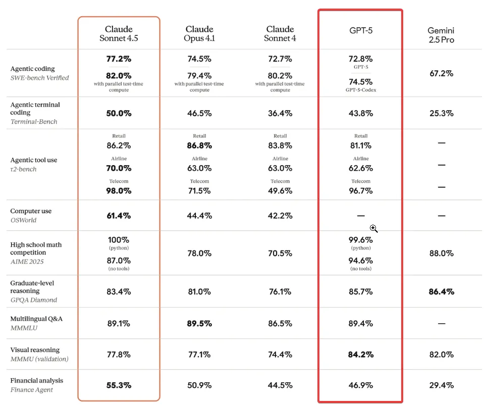 Okay, so how does Sonnet 4.5 stack up against the competition?