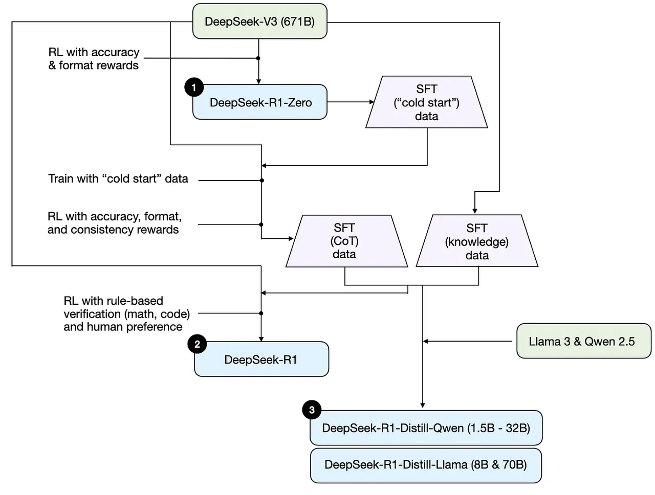 If you're running locally, the R1-Distill-Qwen-32B is the production sweet spot: outperforms OpenAI o1-mini across most benchmarks, runs on a single high-end GPU, and retains most of R1's reasoning capability at a fraction of the memory cost.