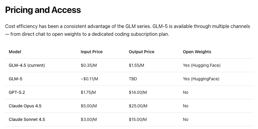 Availability: GPT-5.2 is broadly accessible through ChatGPT Plus and API. GLM-5 launched February 11 via Z.ai's platform with an expected MIT-licensed open-weight release following Zhipu's tradition. DeepSeek V3.2 is available now via their API.