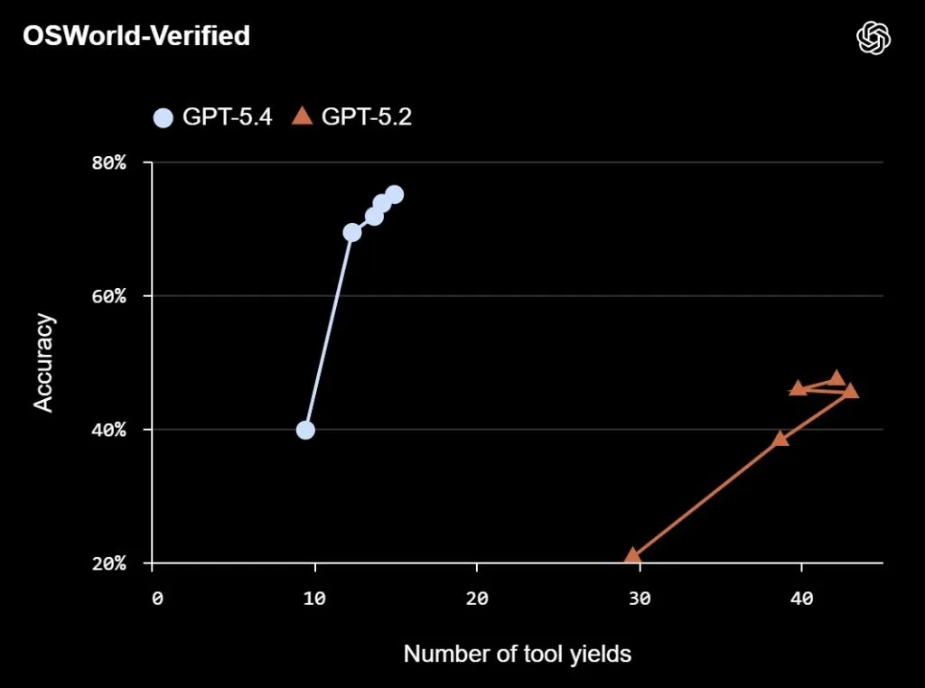 On the OSWorld-Verified benchmark, which measures navigation in desktop environments, GPT-5.4 hit a 75.0% success rate. GPT-5.2 sat at 47.3%, and the human comparison group scored 72.4%, making this the first time the model has surpassed human performance on this test.