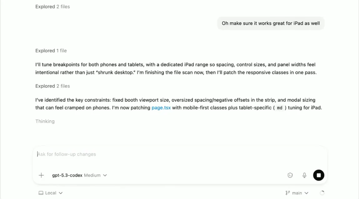The steering feature is what makes GPT-5.3 Codex different from earlier versions. Before this, mid-task corrections meant stopping, losing context, and starting over. Now it's more like working with a junior developer: you course-correct in real time, they adjust, and work continues.