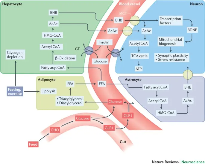 Once those reserves get low, your body starts flipping to a different fuel source: fatty acids and ketone bodies. A 2025 review in Nature Metabolism describes this as "cyclic metabolic switching" — the back-and-forth between glucose-burning and fat-burning states. The researcher behind the theory, Mark Mattson at Johns Hopkins, argues that this cycling itself may drive many of the health effects people associate with fasting. Not just the calorie deficit. The switching.