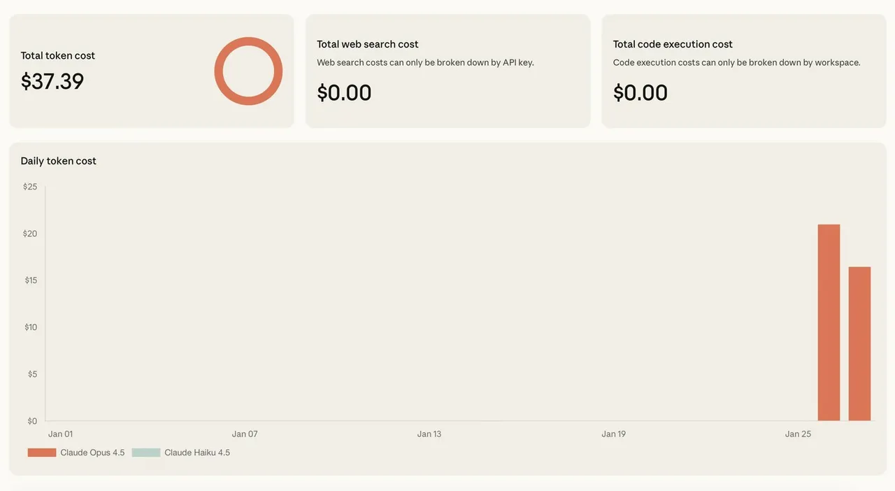 After running this check mid-month, I discovered I'd already used 2.1M input tokens ($6.30) and 890K output tokens ($13.35). I wasn't expecting to hit $20 by day 15.