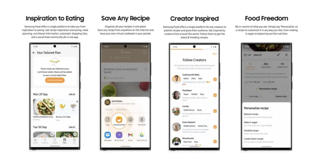 The real-world trade-off: many Samsung Food recipes pull from third-party sites rather than native recipes, which means occasional ad-laden pages when you open the full recipe. The list and planning workflow is excellent; the recipe reading experience is uneven.
