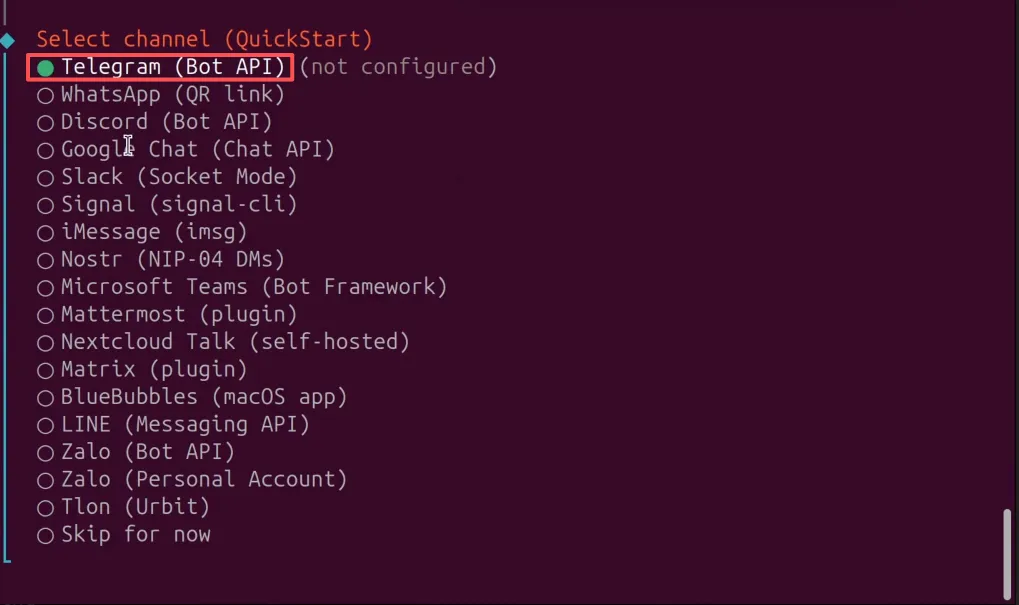 This is where things get real. You're connecting the Telegram bot to Moltbot's actual AI engine.