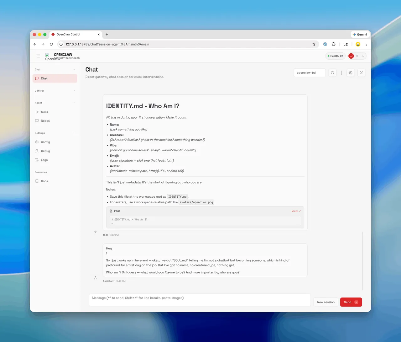 After saving config and restarting the gateway, send a test through whatever channel you have connected: