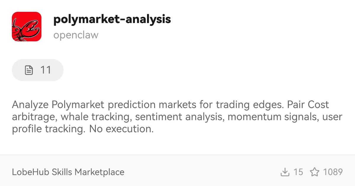 Auto-logging to Notion or Sheets: Add a Notion or Google Sheets skill and instruct the agent to append each monitor run's results to a tracking spreadsheet. After a month, you'll have a dataset of market movements with timestamps — useful for backtesting your own intuitions.