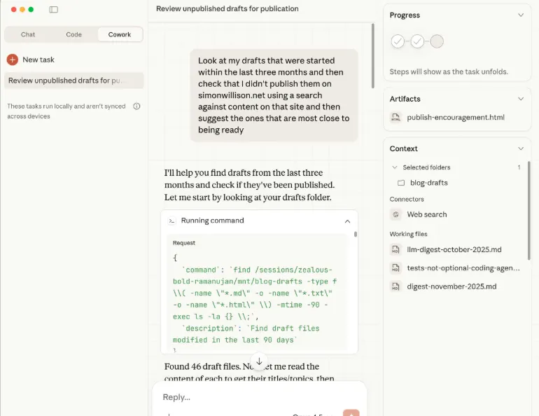 According to InfoQ's analysis, Cowork uses the same Claude Agent SDK as Claude Code, which means it inherited proven capabilities instead of building from scratch.
