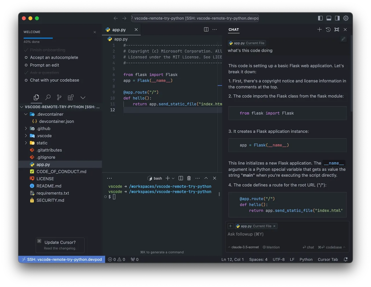 It's a command-line assistant that can read files, run tests, edit code across multiple files, and even execute terminal commands.