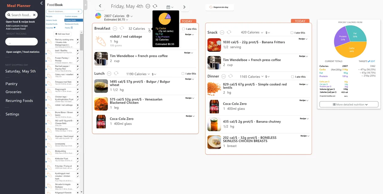 What works well: If you track macros seriously, this is the most precise tool in the category. The plan is built around your numbers, not just your food preferences. The pantry feature is genuinely useful — you add what you have and it prioritizes those ingredients in the plan, which reduces waste and over-purchasing.