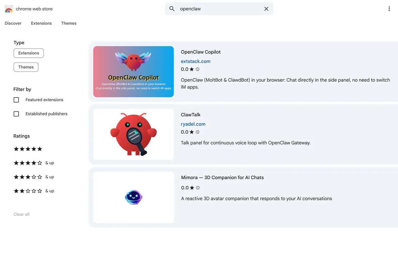 Here's the situation as of February 2026: OpenClaw does not publish an official extension to the Chrome Web Store. The extension ships inside the npm package as static files.