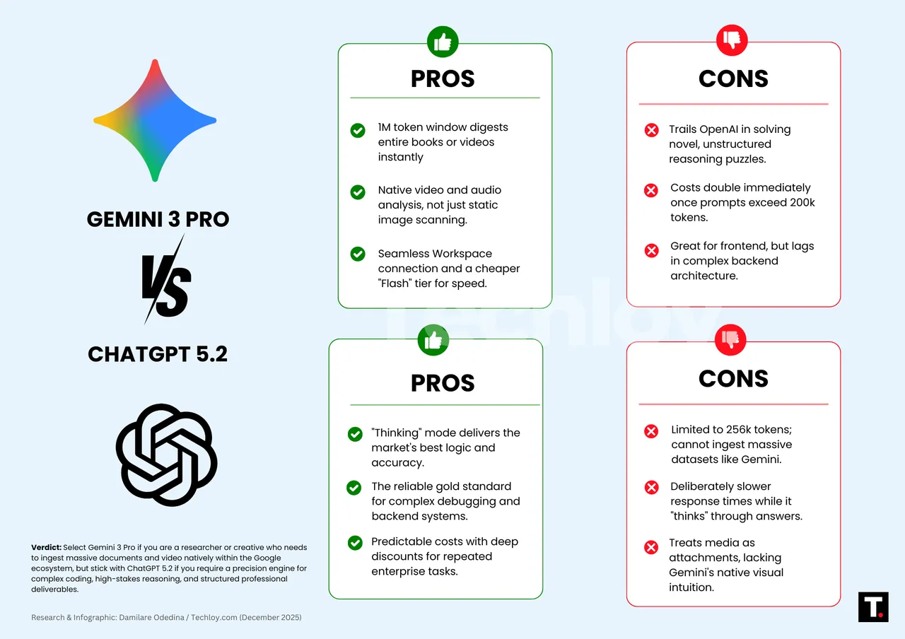 For day-to-day chatgpt vs gemini writing work: ChatGPT 5.2 is my default for anything with a deadline or a client. Gemini 3 Pro is the tool I open when I want to explore ideas with no pressure, just to see what happens.